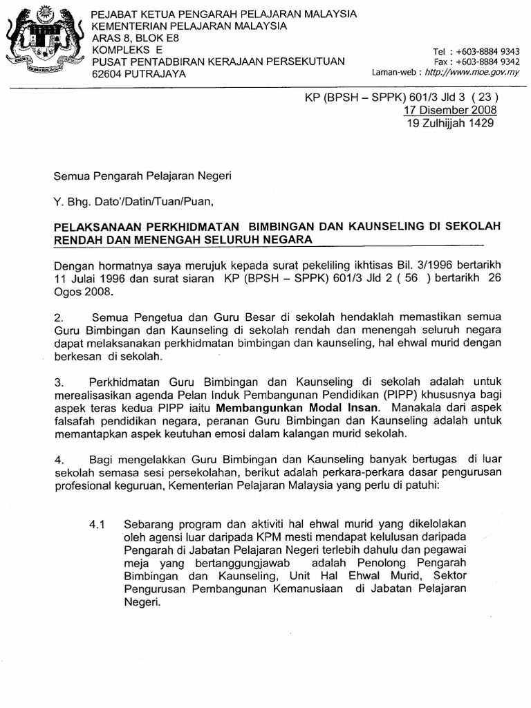 Pekeliling Bimbingan Dan Kaunseling Pdf Pdf
